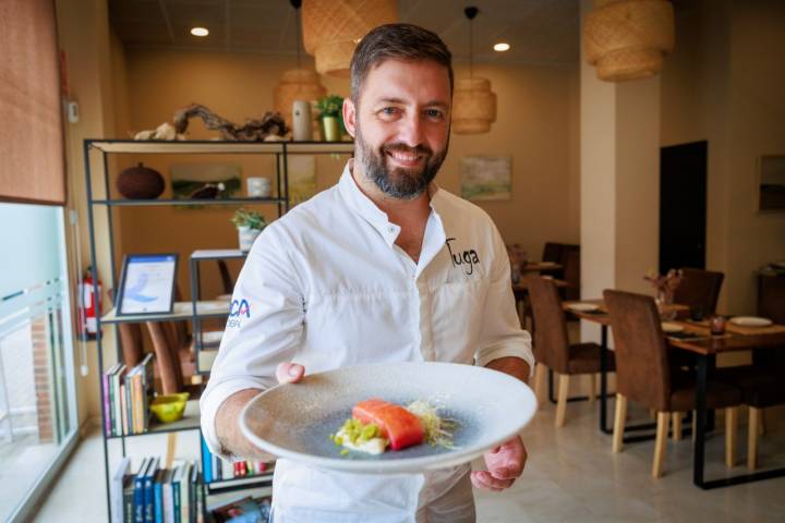 La piedra blanca y tosca que rodea El Puerto de Santa María guía la filosofía que valora cada elemento, por humilde que sea, de Edu Pérez. Esa roca es la que inspira la cocina de ‘Tohqa’ (1 Sol Guía Repsol), donde la candela hace el resto cuando se posan sobre ella tomates, langostinos o la típica morena de Cádiz, conjugada con caldos que beben de la herencia de la provincia.