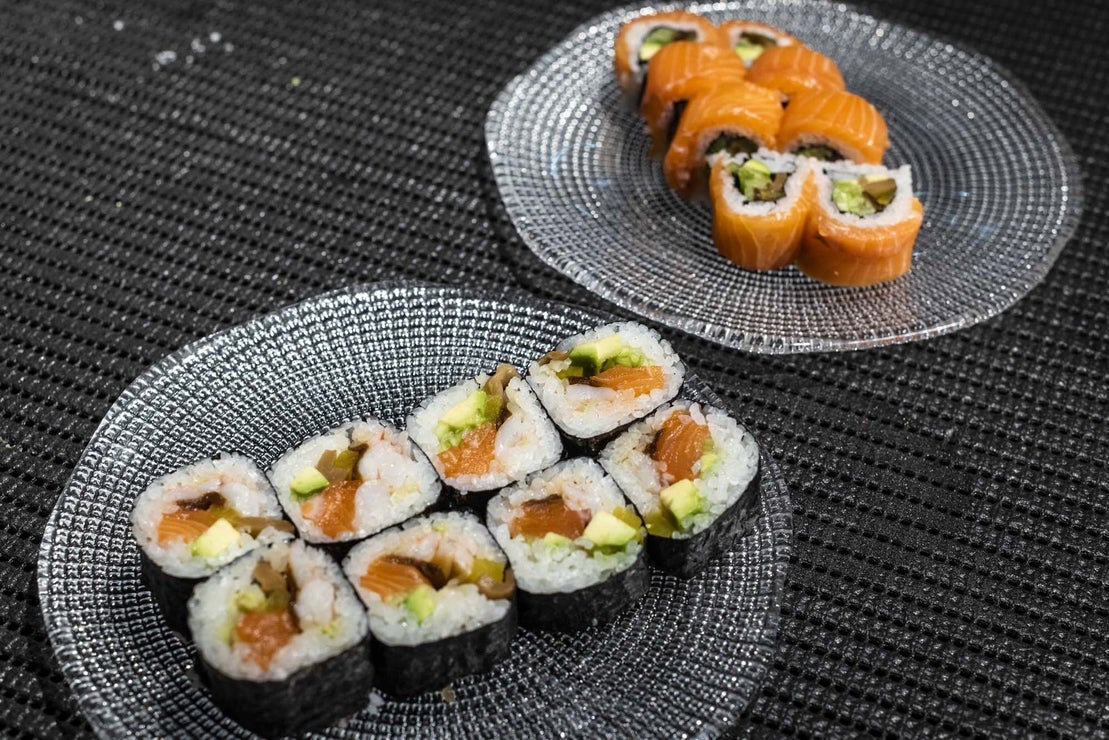 Futomaki de salmón y langostino