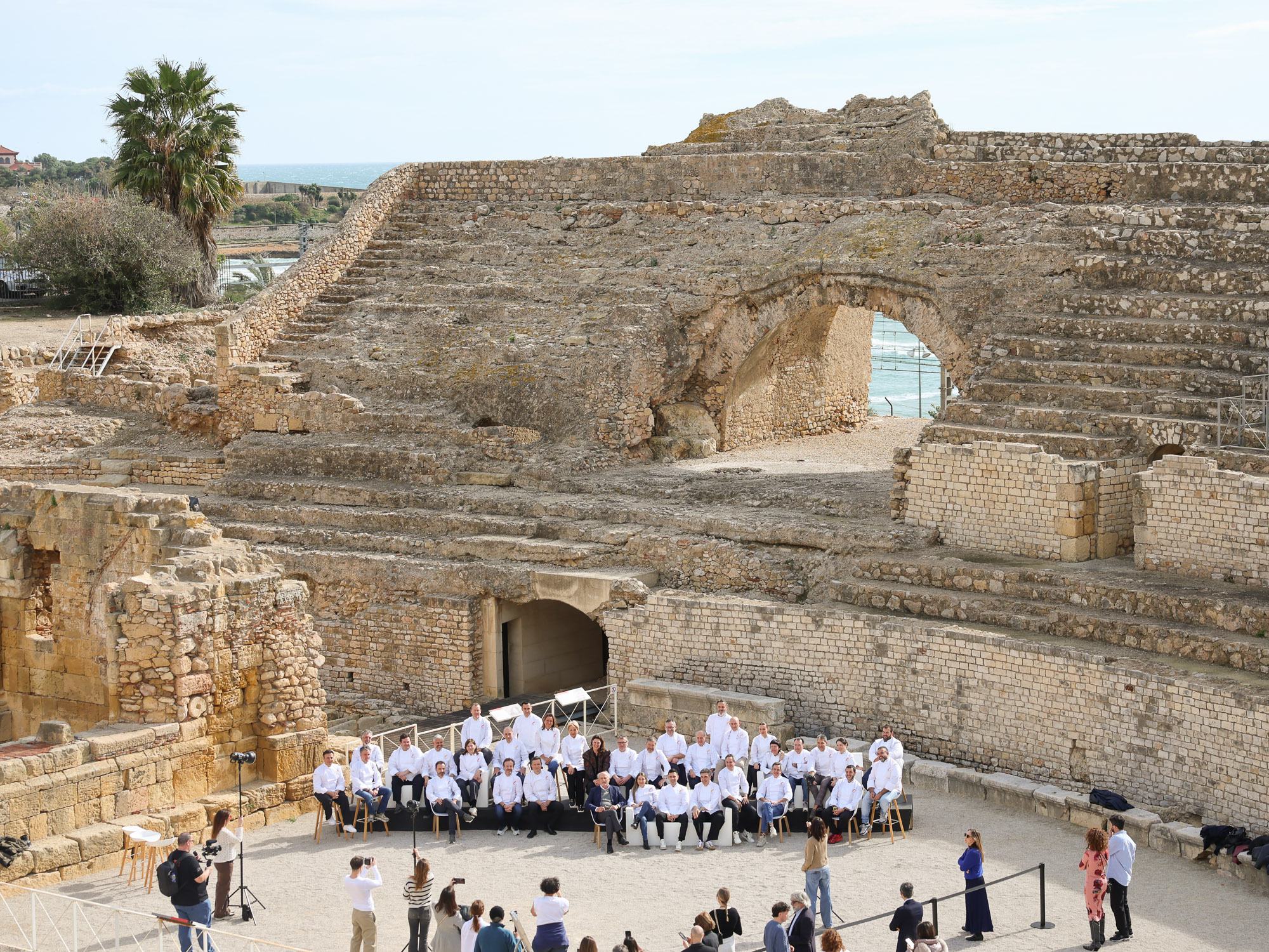 El anfiteatro romano de Tarraco, construido a principios del siglo II d. C., ha reunido a los grandes cocineros con 3 Soles Guía Repsol de España. Un escenario que respira historia con el azul del Mediterráneo de fondo y donde un año más se ha llevado a cabo la foto de familia de quienes ocupan el olimpo de la gastronomía española. Todo ellos inspiran a la cantera de nuevos Soles que se unen al universo Guía Repsol y a los nuevos 2 Soles que reconfirman su talento con su cocina.